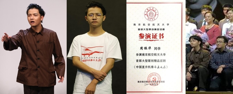 精文体鎏华,为艺采英才从2019年3月的校内演员海选,到9月的校内预演、公演,再到10月份前往江苏大剧院参展“紫金文化艺术节-戏梦风华·大学生戏剧展演”,我是南航首部大型原创话剧《中国直升机泰斗王适存》的见证者和参与者。不畏寒暑不畏晴雨,放弃暑假与家人团聚,全力投身于角色的演绎、打磨。为了角色剪掉留攒两年的长发,乘早八点的班车前往明故宫排练,到晚十点的班车回将军路休息,连轴转的日子早已过了不胜数。所幸南航官微、光明日报、新华网等等各大主流媒体的报道、电视台的播报,与2018-2019杰出团队的称号,让我大学绘卷中的这朵文艺之花开得更加艳丽。